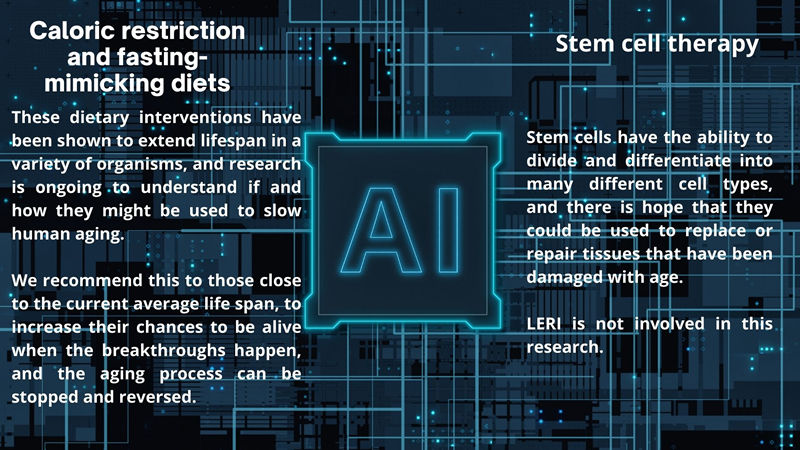 And finally we have Metformin and rapamycin: These drugs, traditionally used for treating diabetes and preventing organ transplant rejection respectively, have shown some promise in extending lifespan, possibly by mimicking the effects of caloric restriction.